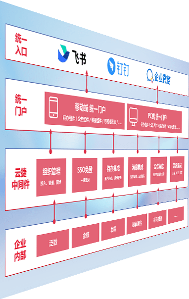 对协作平台提供支持服务,,,,支持企业应用与协作平台对接,,,包含组织同步、、、、消息集成、、、、待办集成等。。支持目前主流的协作平台:钉钉、、企微和飞书。。